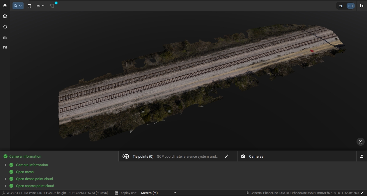 If you are using the imagery for mapping, 3D reconstruction, and orthomosaics, you can use software, such as Pix4D, to process the images. In the case of Pix4D, the process is quite simple. Just upload the photos or directory to the software and select the different operations and outputs that you need. In this case, for example, we captured a section of a railroad and processed it into a 3D point cloud and mesh, an orthomosaic and DSM in a relatively short amount of time. This data was captured with RTK being used in the field, which provides more accurate results. If accuracy is even more important, it would be helpful to use ground control points (GCPs) in your project and process those. The specific processing workflows are beyond the scope of this document, but this gives you one idea about how the data can be used.