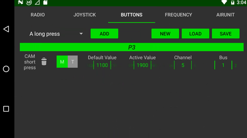 • In the BUTTONS tab of the slave controller, make a new configuration, assign the CAM short press button as shown below, and click “SAVE”.