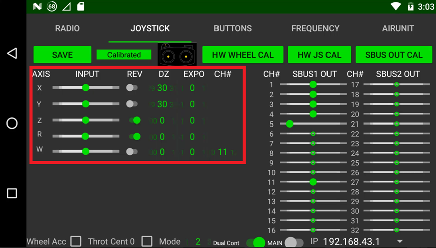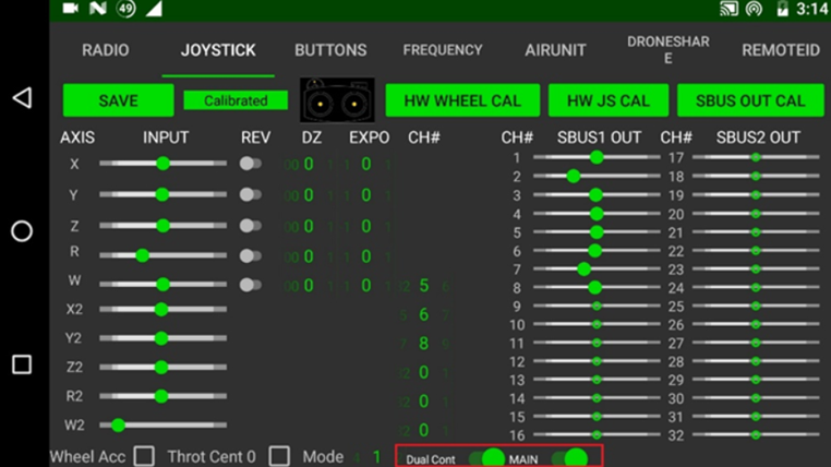 Go to the Joystick tab, turn on the “Dual Cont” and “Main”, and click “SAVE”. You may have to restart the controller before proceeding, if it directs you to do so.