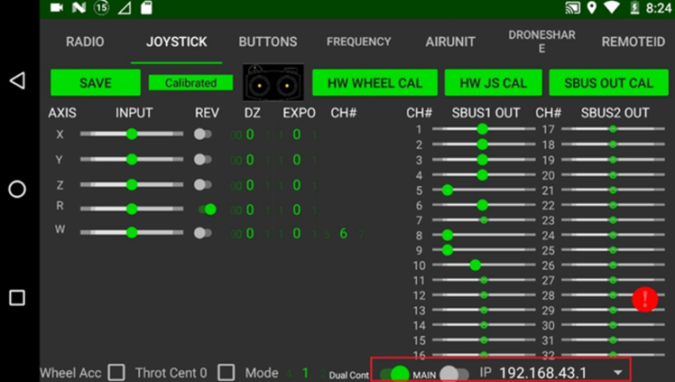 After the WiFi is connected, go to the Herelink settings Joystick tab, turn on the “Dual Cont”, and select 192.168.43.1 (default). (This IP target is the IP of the master remote). Clink “SAVE” and restart the slave controller.