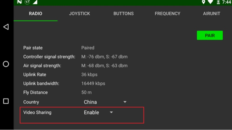 Go to the radio tab, and set the video sharing to “Enable”.
