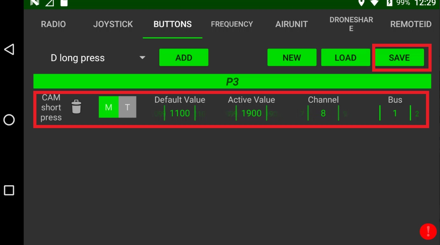 Turn on the Herelink, go into the Herelink settings, click on the BUTTONS tab, create a new configuration, and name it something you’ll remember.